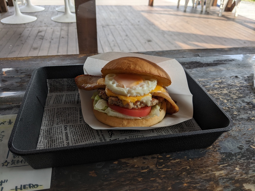| わあ、良い景色だなあ。それにハンバーガーも美味しそうだ。楽しんでくださいね。^^ |