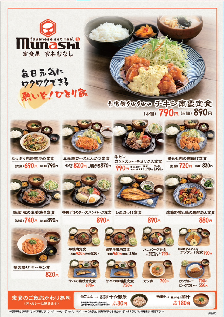 たまーーーに行ってた近くの白御飯食べ放題の定食屋メニューが