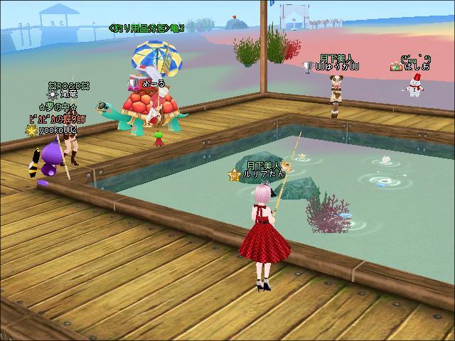 その後、ギルメンのカシスさんと海辺でイベント魚釣りをしたわ。