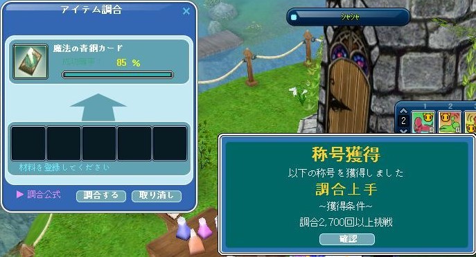 ■期間限定! 材料アイテム調合確率UPキャンペーン!!<魔法師の家>シャシャで、材料アイテムの調合確率がUPしています+。(ノ`・Д・)ノオォオォ。+゚ぜひこの機会にお手持ちの材料を、高級な材料に昇格させちゃいましょう♪