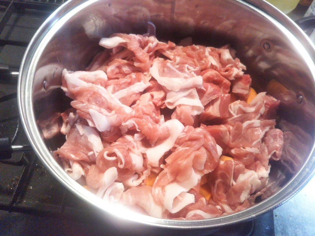 肉を敷き詰めて
