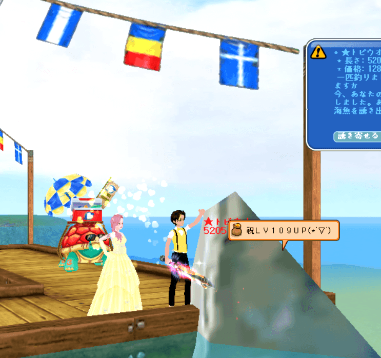 アゲキャンになってから ユニークとランダムがいつもより釣れる気がするのはボクだけ? LV110になると111の解放クエストでユニーク魚200匹釣れ! これなら調子良さそう^^ アゲキャン㊥に間に合うかな? ってことで先日レベル109UP 間違えて釣った魚を深海魚のエサにしたことは内緒!