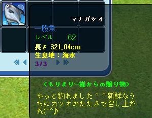 | フレさん、すごいですねฅ(º ロ º ฅ) 一体毎日何時間釣ってるんだろう?もちろん、すごい神装備なのだろうけど。。。 |