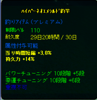 釣竿をハイパー化又はリハイパー化した際の属性付与で、高属性が付与される確率がUP!
