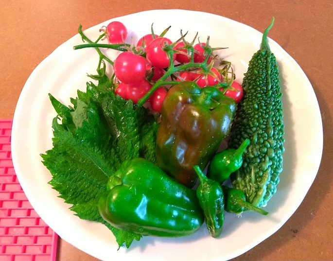 ゴーヤも ぼちぼち採っても いいかな? ってことで、収穫祭( ⑉¯ ꇴ ¯⑉ )