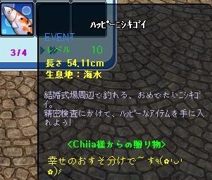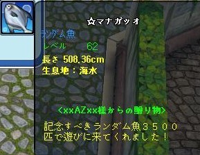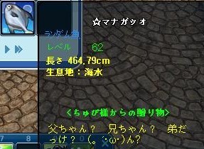 ランダム魚、キリ番でとーちゃんを! さりげなく存在感をしめそうとしてますからwwwwww アズさん、ありがとうございます^^ ランダム魚3500匹おめでとうございます^^