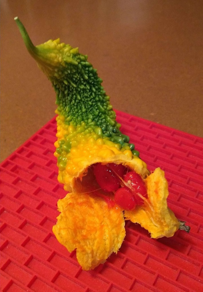 朝出かけようと思ったとき、ベランダのゴーヤの1個が 黄ばんできてたんで、
