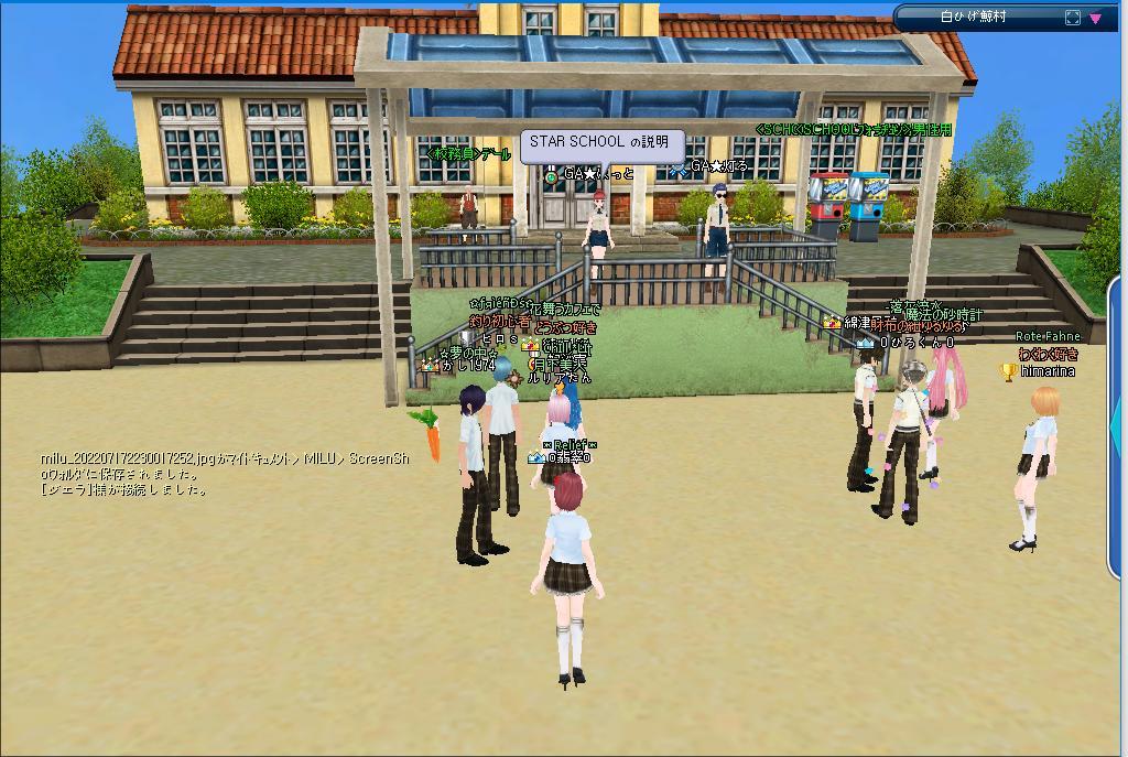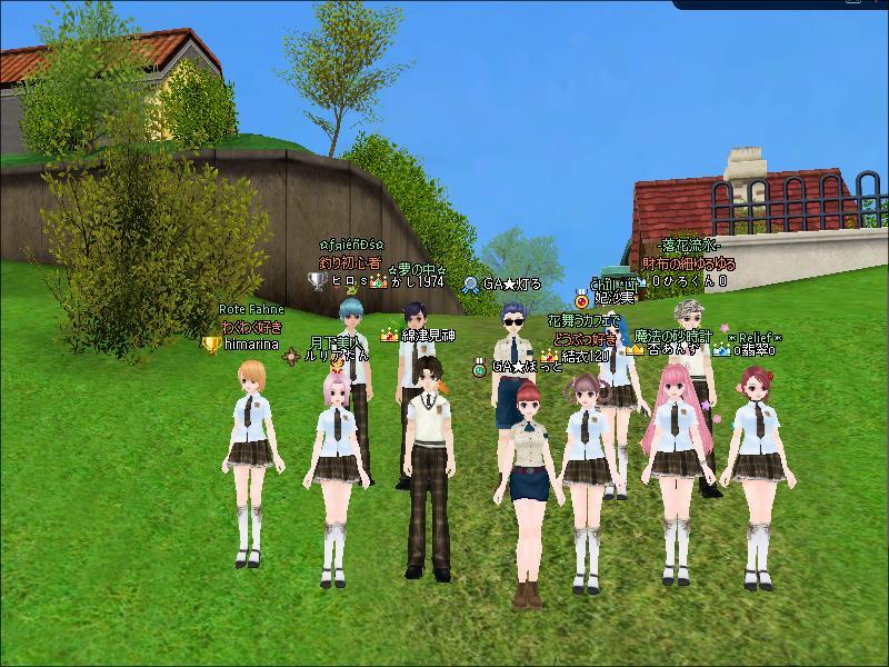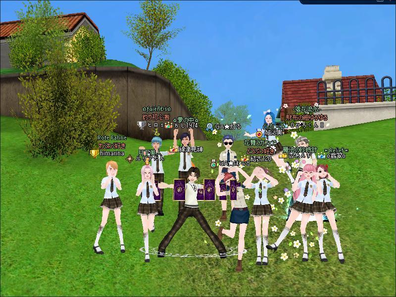 20:00~MILU School入学式があり、ギルメンの五島ひめさんが入学されました^^入学式後記念撮影w 私とチャピコさん以外のギルメンは忘れてたのかな?