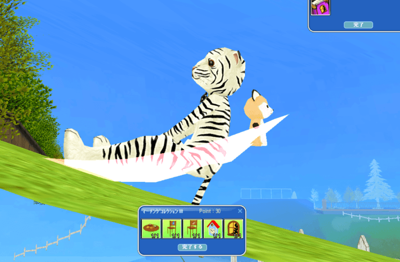 とらちゃんになってお昼寝したらハンモックの一部に穴が開いてシッポとおちりが!