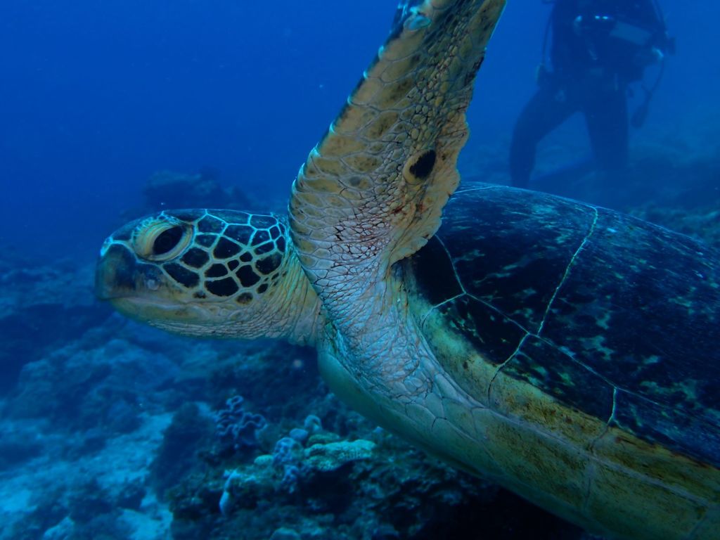 ご飯食べていたカメが、なぜかこっちのほうに! おかげで至近距離で写真取れちゃったww