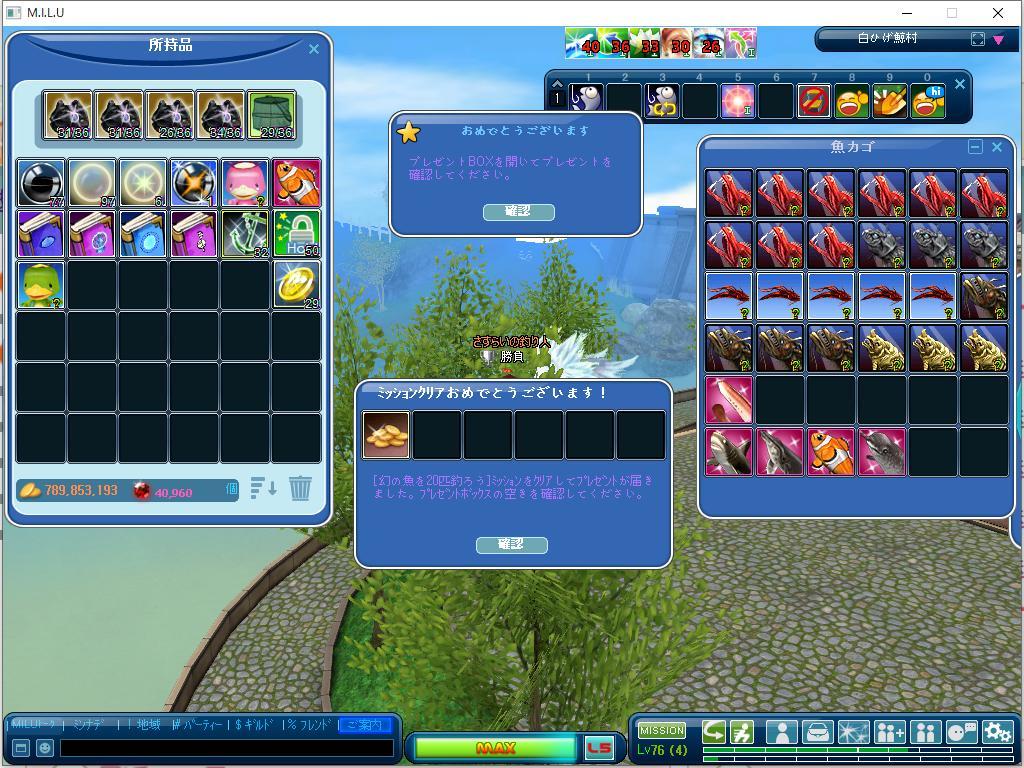 結果は深海魚・32匹 幻魚・27匹と善戦??お陰でLvあげにはブレーキだったですねw