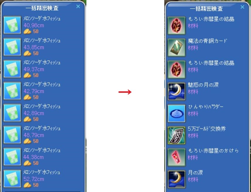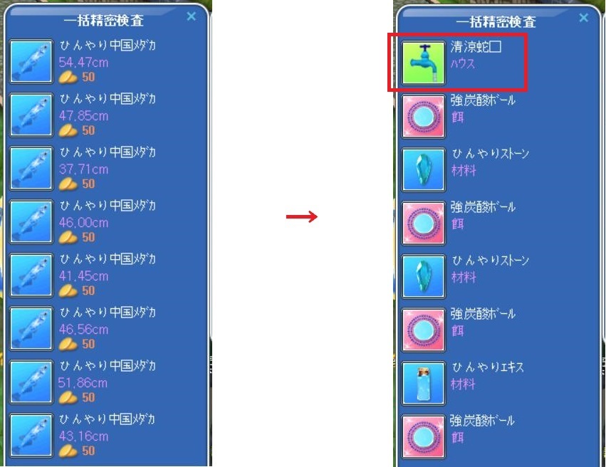 結晶とカードが出たから、いいようなものの… 続いて、たま~に釣れるというレアをまとめてポイッ