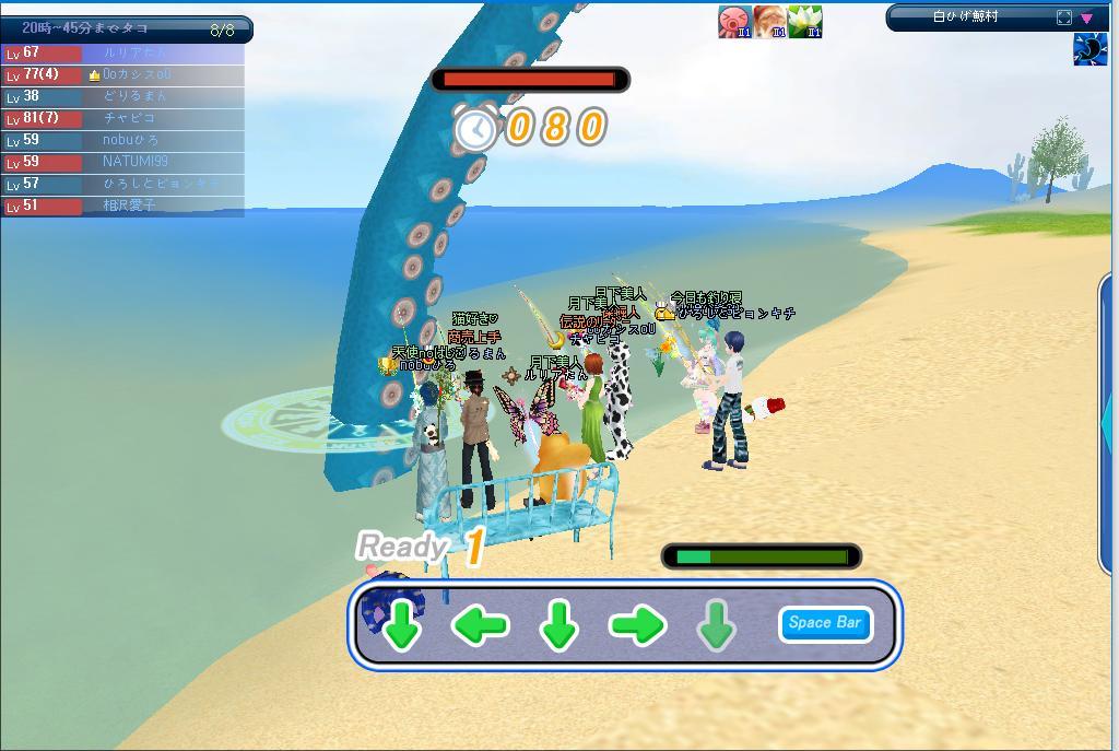 20:00~0鯖時の砂漠でギルド主催協力釣りに参加したわ。