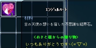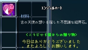 | 「らっしゃい!!」黒さん似合ってますね@@ 調合発成功オメデトウゴザイマス♪ |