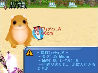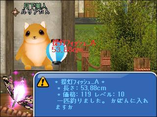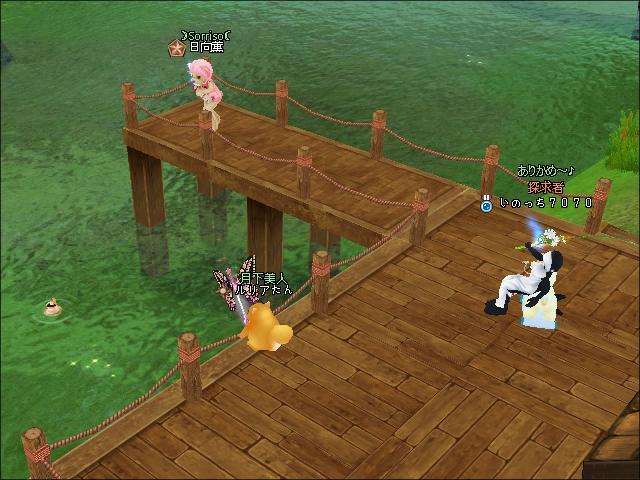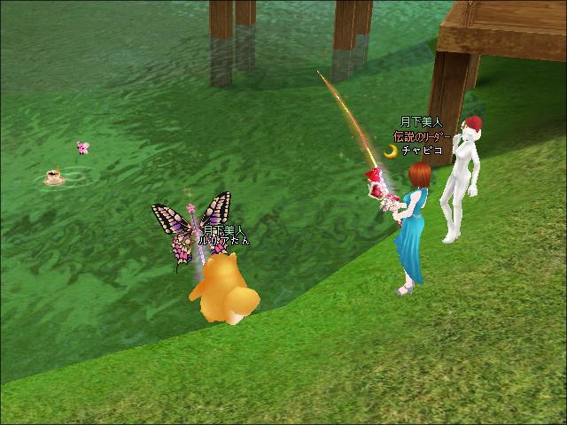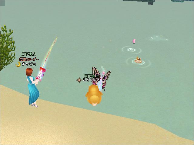 夜、3鯖ピシュル前でギルメンのチャピコさんと釣りをしたわ。