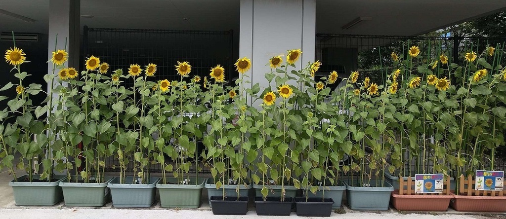 1週間ぶりに会社に行ったら、お世話しているヒマワリが壮観なことになってたヮ(゚д゚)ォ!