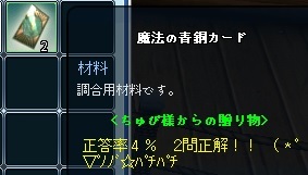 今日の貰いもの:ちゅぴのクイズで正解だったヾ(o´∀`o)ノワァーィ♪