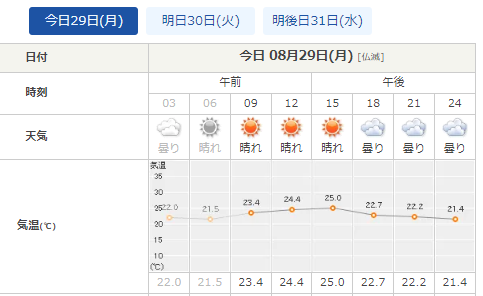 今朝、どんくらい涼しいか確認!