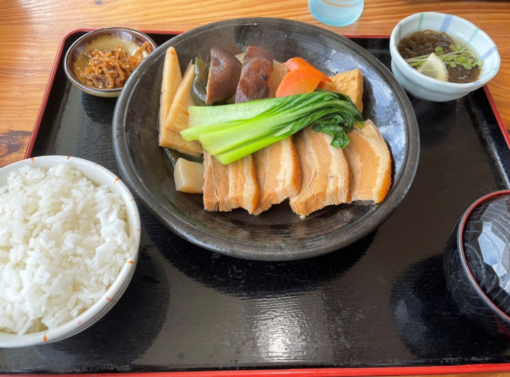 三枚肉の定食頼んだ。 定食で1000円はちょっと高いが、見た目もよし。