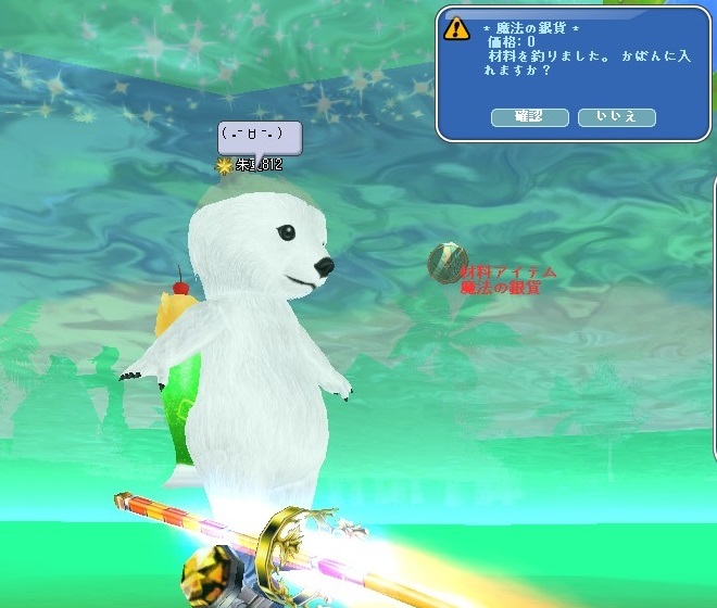 いあいあ、上で釣らねば!ってことで、課金エサ釣ったら、黄色いウサギもきたヾ(๑╹ヮ╹๑)ノ”