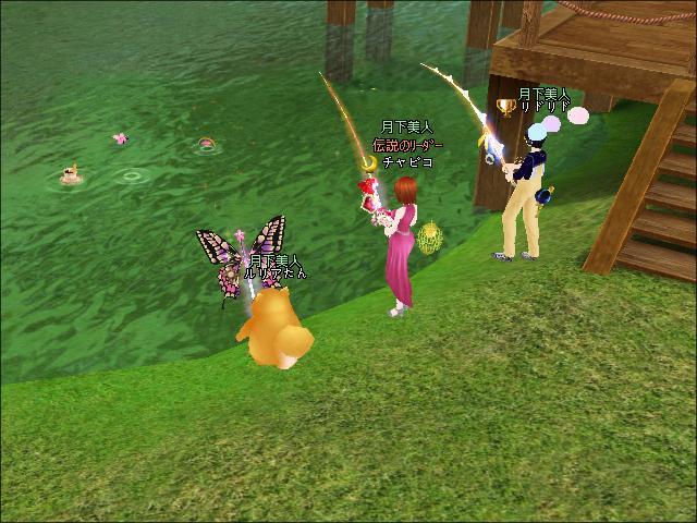 夕方、3鯖ピシュル前でギルメンのリドリドさん、チャピコさんと釣りをしたわ。