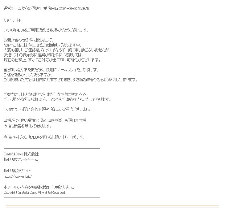 綿津見神さんのミルトモ情報がおかしくなっているようで 私からは ゲーム内情報でINが確認できませんでした