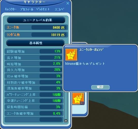 ユニーク魚8400匹達成(o´エ`ノノ゙ おめでとうございます♪ |
