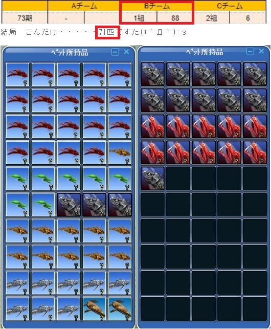 | ユニーク魚1700匹、チーム対抗優勝おめでとうです♪ |