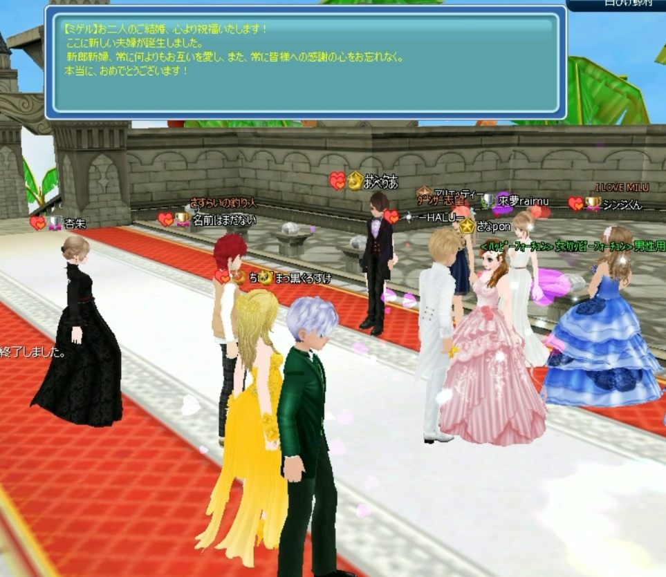 ご結婚されたフレさん❤パチパチ☆(o´I`ノノ゙【。゚+.オメデトウ。+.゚】