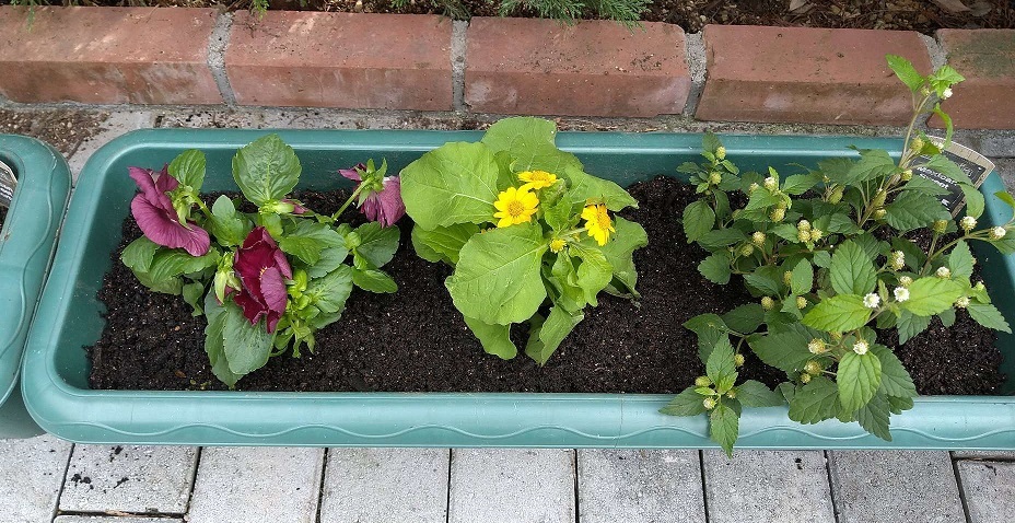 日曜日に、ヒマワリを撤去したあとのプランターに 一部移植して