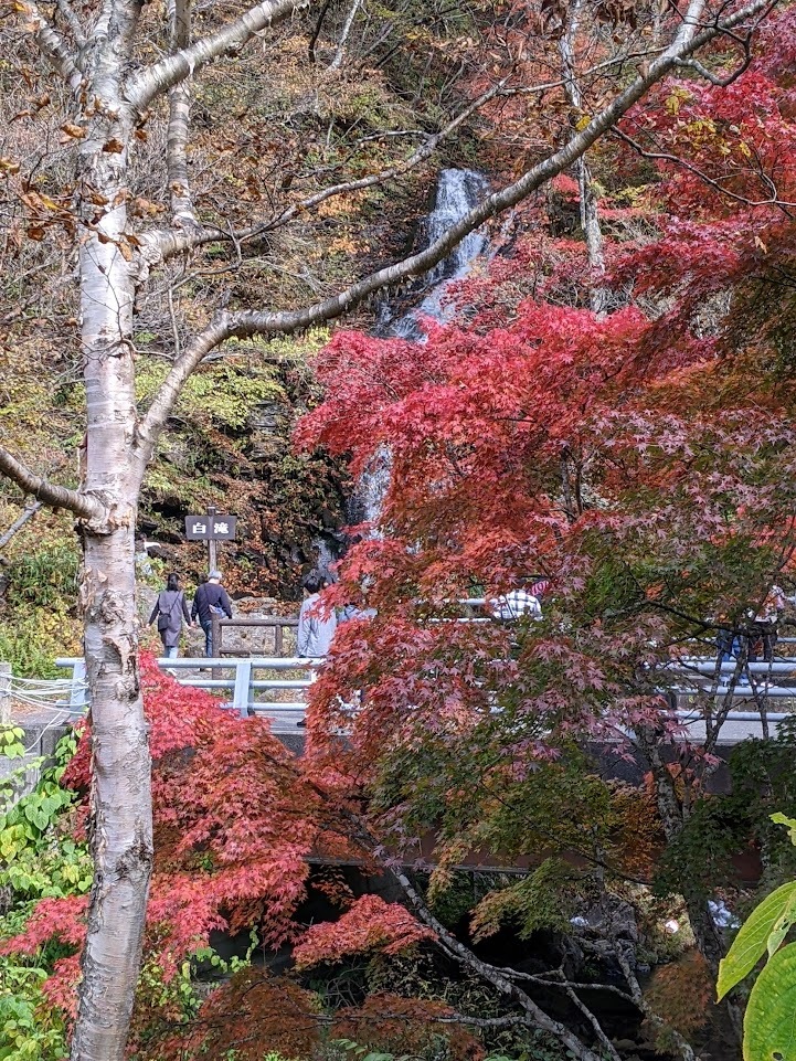 ふもとはまだまだでしたが、山頂付近の白滝ではもみじがいい感じに色づいておりとてもきれいでした。