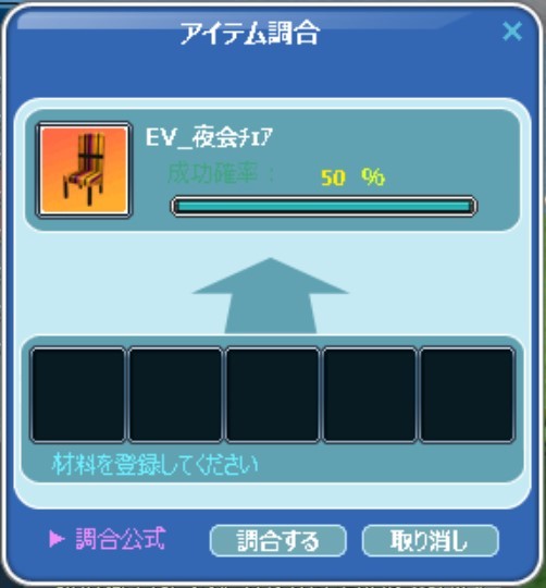 最近、チェアの調合は装備コレブではなく家具コレブで調合することになったようだ…