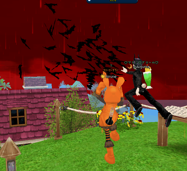 | 赤い空に血の雨!コウモリ!!不気味なイベだー-- |