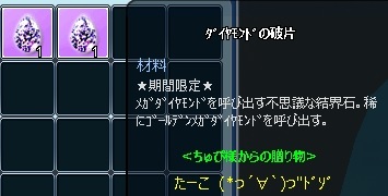 停滞気味ですね~~~ あんまし すること無いな~って おもってたら ろっぷ君から 最高のお誘いありました~ なんと イベタコ しかも30回以上だってv( ̄Д ̄)v ご覧の様に ゴールデンダイヤモンドも3回かな でましたよ~ ありがとうございまーす☆彡♪♪