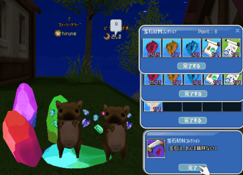 案内板クエ4が終って~~~時限クエ4を終わらせた(`・ω・´)ゞマスコットらしい可愛いのが1つ釣れました♪ご飯落ちの前に、お肉が2冊目の青本でたので~コレブ完成式☆ついでに、ここで・・宝石発見!探検隊☆彡イベント掲示板コンテストに投稿する運営イベ 撮ってきたwお肉から宝石が届いた❤+(人・∀・*)+。アリガト♪
