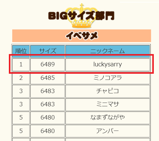 なんと1位! 64.89cmで1位とか、予想外です。 SSも撮ってませんでした。 イベ王は何が起こるかわからないですね^^