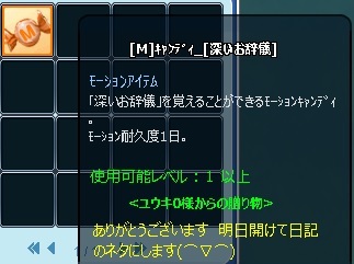 今日の貰いもの:ユウキさん キリ番アップ(*´∇`)ノおめでとうございま~す☆彡♪