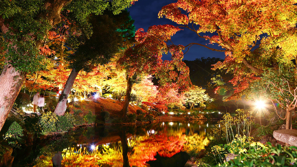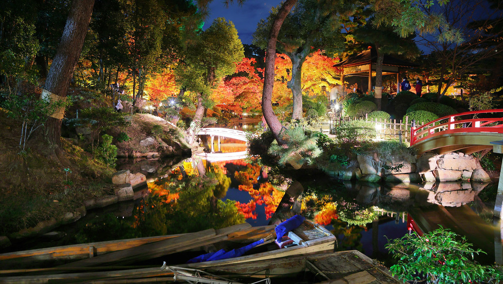 広島市内にある庭園で紅葉のライトアップが始まったと聞いて行ってみました。