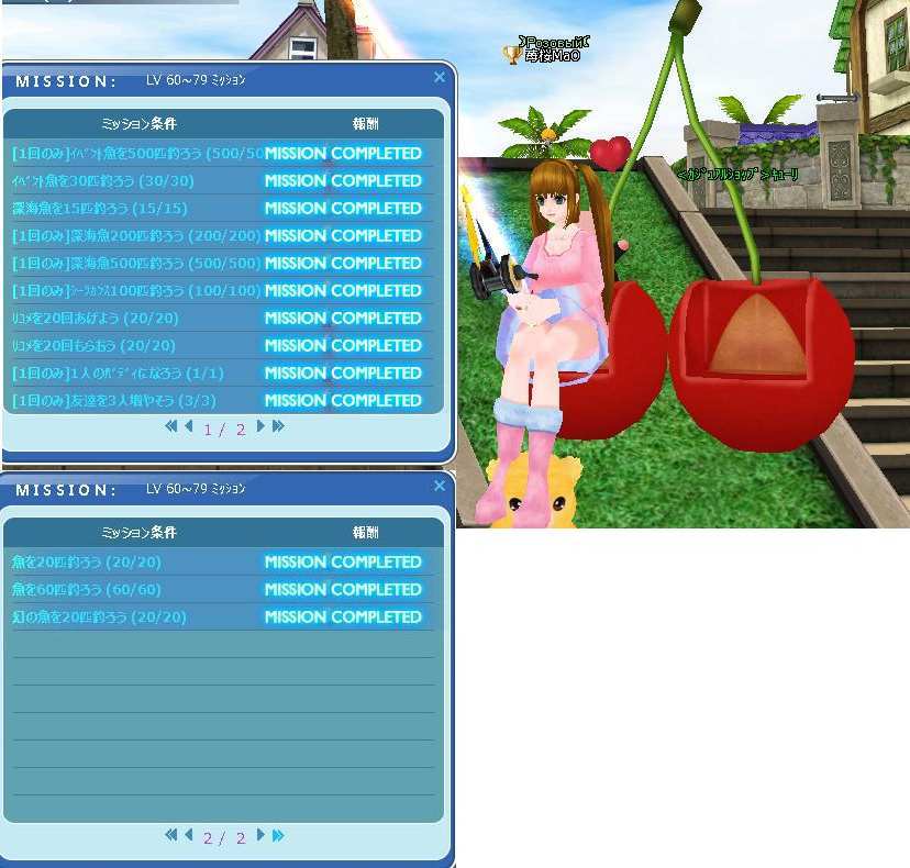 | ミッション いっぱい クリア お疲れ様です★ まおさんに 似て イケメンさんなんです ね(〃^^〃) 確かに イベント釣り より 長くて 眠くなります ね^^; |