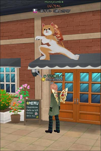 ワンコ、看板に向かってエモってたつもりが屋根の上だったとわ><; マナブさんからはこう見えるんですねぇ(ノ∀`) |