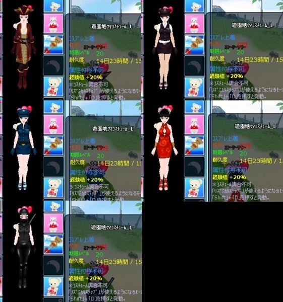 何度着なおしてもこの5種類のコスが表示される。
