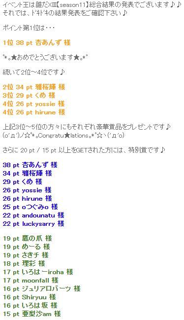 | イベ王総合4位入賞ヽ(〃'▽'〃)ノ☆゜'・:*☆おめでとう♪ |