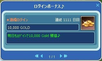 昨日、連続ログイン 1111 日目の4桁ぞろ目になりました~(*^_^*)