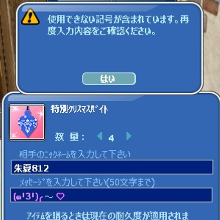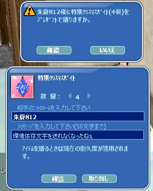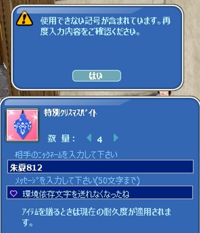 環境依存文字を全部抜いたら普通の「送りますか?」窓になる
