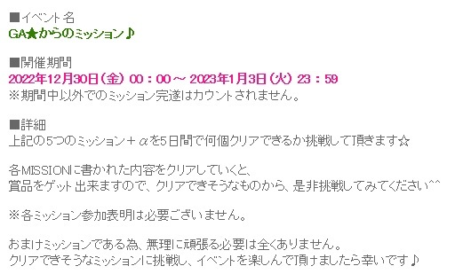 「GA★からのミッション」1日目です~