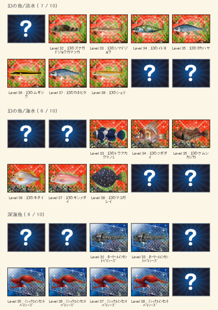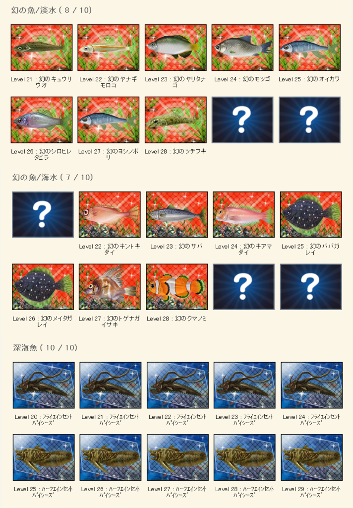 図鑑竿20では、魚図鑑のレベル20台をすべて埋めるのは無理っぽいので