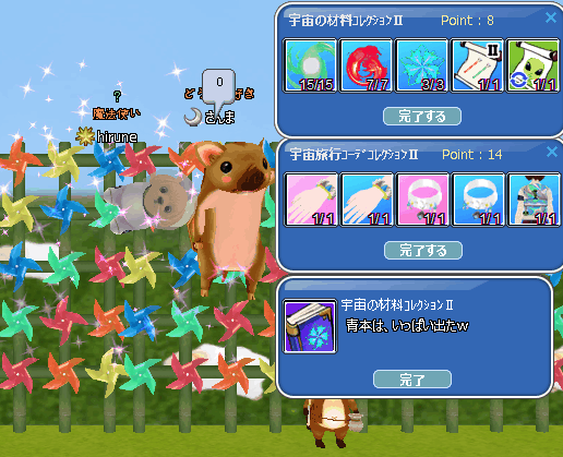 メンテ中に映画を観てきました♪ 仕掛人・藤枝梅安池波正太郎生誕100年記念の映画ですね☆アタイは好きですね~~~!この前のレジェンド&バタフライで消化不良だったのでw役者よし・効果音&音楽よし・演技よし☆続編も4月7日~始まります!観に行きますYO!!さて、メンテ前の色々MILUは~2週目のコレブ2種完成できました♪ ギャラクシーウイングとぐるぐるサテライトの修繕可~ネーム交換❤ ギャラクシーウイングは、お互い一発成功だった♪このEVミルウエイは楽しいね!!!ETいるしwドリンクは2種2個ずつできて、自分で飲んで・・メンテ明けインして確認したら・・違う、それも飴に変化しててぇ━━(*´・д・)━━!!!っとww詳しくは、不具合掲示板に書きましたが・・お問い合わせを出して直ぐに…補填が届きました!ε-(´∀`*)ホッ ラブスペースダンス ムーンステップ ウリウリでも撮ってみた(*´ω`*)新イベはValentine・・・・・・興味なしwクエは、ピシュルと案内板~始まります☆30釣ったら、50イベ釣り(○・`д・)ノ ダー!!のんびり消化しますw