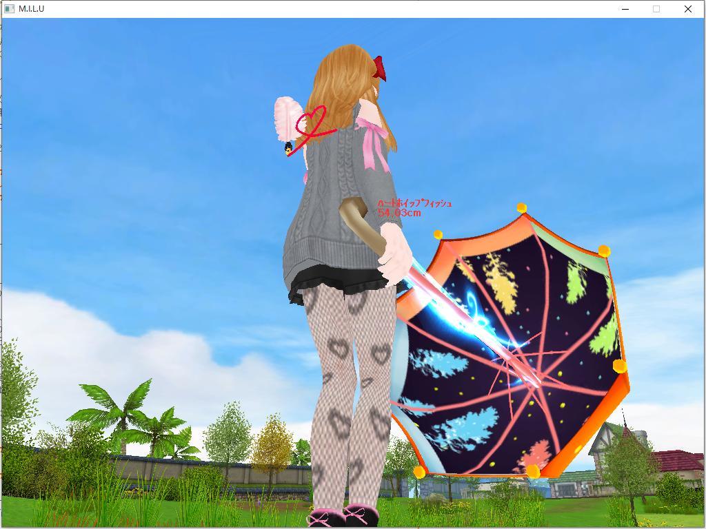 次も韓国の方の作品、リトルレディ傘竿です。ハイパーにすると竿の棒がピンクになってレディのリボンが伸びるのです。これも竿の縁のレースが細かくてきれいなんですー^^