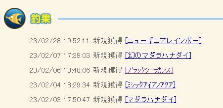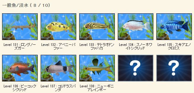 実装されたのが遅かったのでまだ若いレベの魚が揃ってません。 |