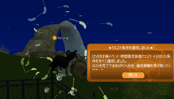 参加できました~(。-∀-)ィヒ♪ 時限クエも4まで完了~v(。`・∀・。)vィェィ♪EV_ハチワレ猫コスに付いていたエモは、猫じゃらしパーティー♪ 余った羽を修繕可にしたこのネコパンチダンスをウリでしたら可愛いな!っと、旦那様 マジカル挑戦権4つ送られてきたぞ飴も3つあって~1つだけドリンクできた! お肉に|。・ω・)ノ⌒由 ポィッてんてんさん+(人・∀・*)+。アリガト♪いつもイベ飴を頂いてますの~嬉しいにゃん♪そんなこんなで、あとはEV_ミルウエイを作ってイベ終了かなwでっかいネコバス・・・邪魔そうだけどなwww